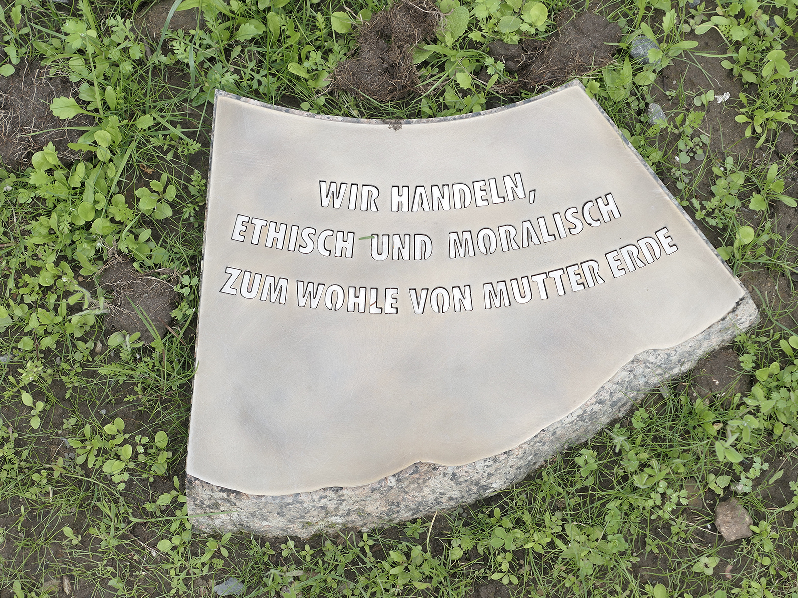 Die Gestaltung des Feierortes wurde in Zusammenarbeit mit einer Geomantie- und Feng Shui Meisterin entwickelt. Auf einem zentralen Findling sind 22 ethische Prinzipien und Leitsätze des Unternehmens als erhaben, positive Schrift aus Edelstahl angebracht. Die selben Schriftzüge sind aus 22 Edelstahltafeln als Negative herausgeschnitten und in dem gesamten Park des Firmengeländes, auf kleinen Steinen liegend, verteilt.